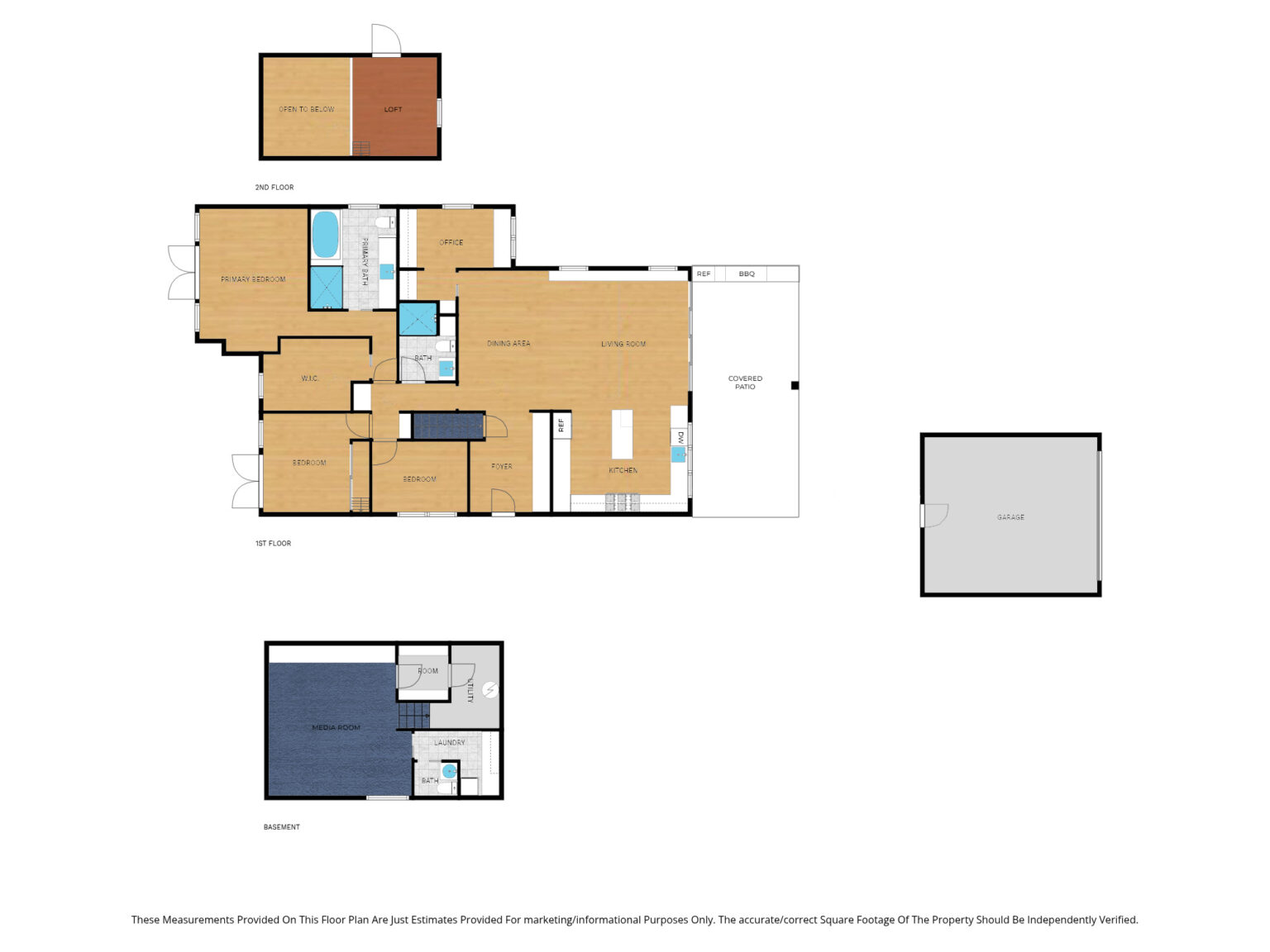 The elegant primary suite with coved ceiling offers an oversized walk-in closet, spa-like bath, and access to a private patio. A secondary bedroom includes a loft with skylight and its own patio with fire table. The lower level features a media/family room with half bath and laundry. Outdoor living shines with mature water-wise landscaping, a covered patio with heaters, built-in BBQ & wine fridge, and a stunning pool with underwater speakers and hot tub.
